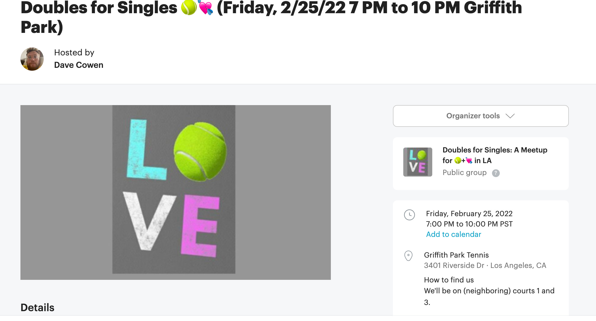 Tonight, Friday, 2/25, also happens to be the second Doubles for Singles meetup 🎾💘.
