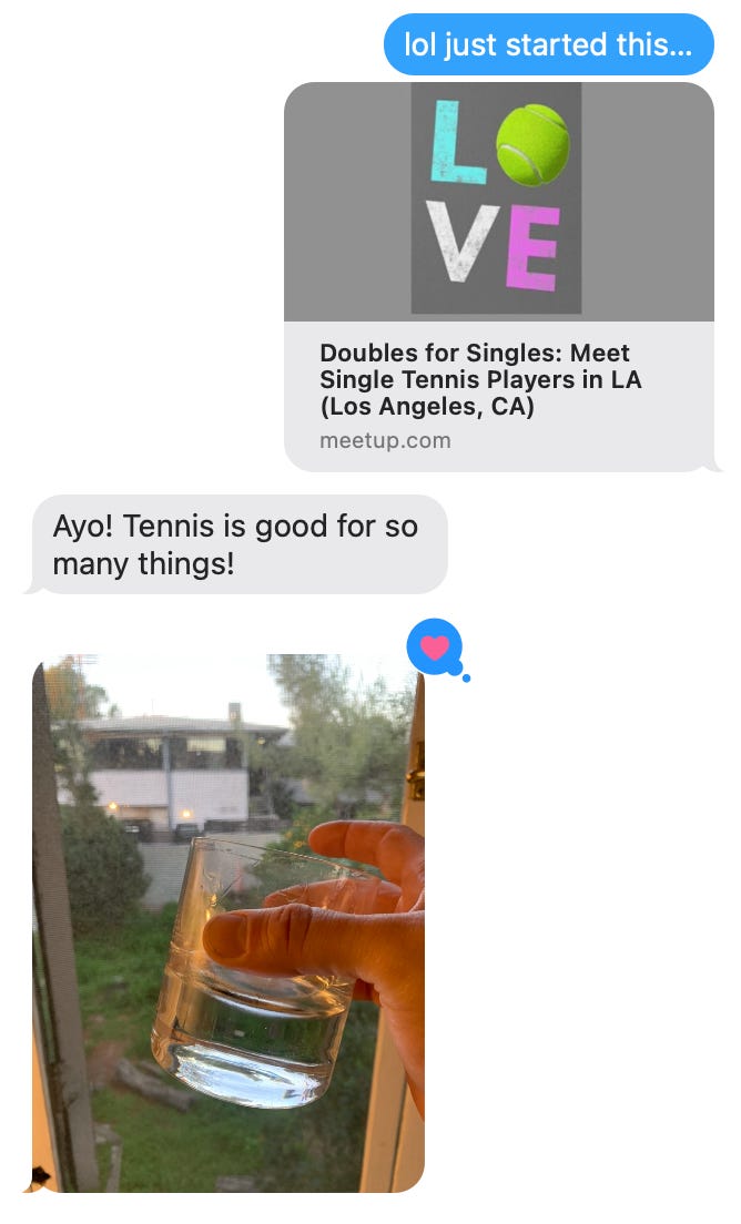 He was also super supportive of my founding of Doubles for Singles 🎾💘: a meetup group for lovers of tennis who also happen to may be looking for love in LA.