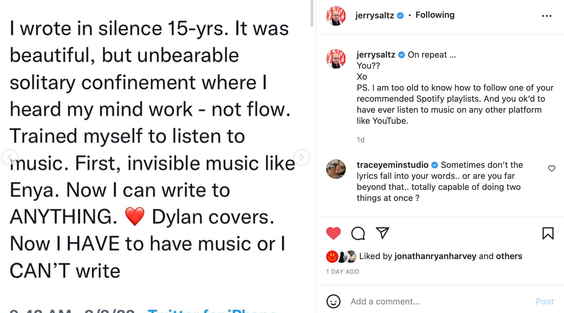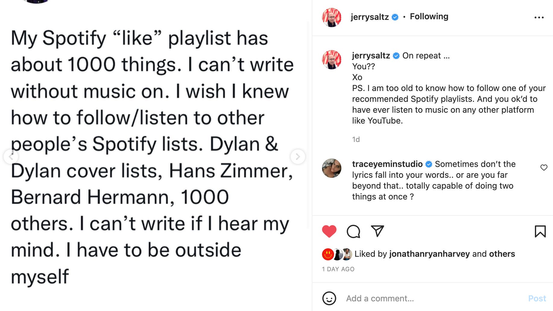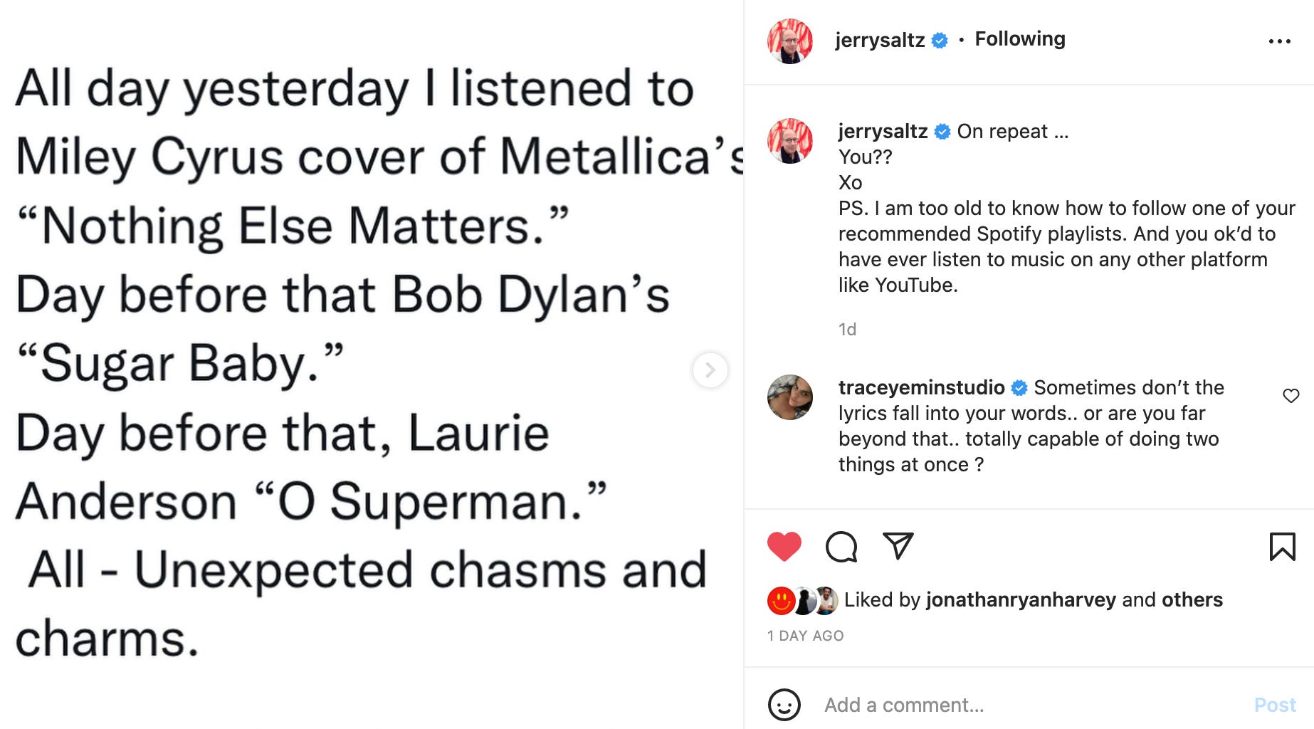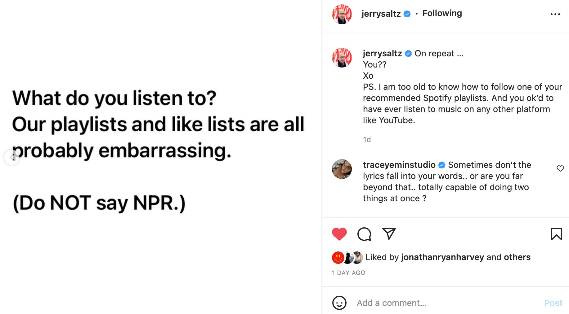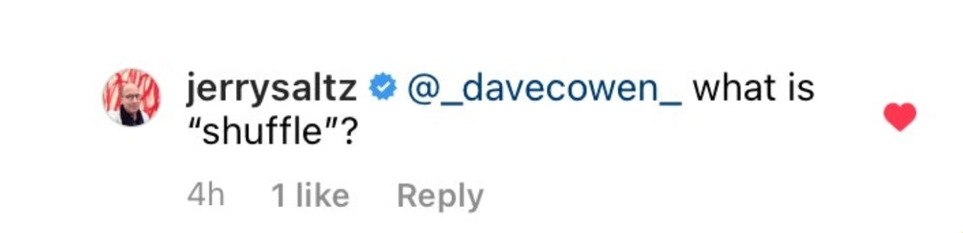Oh, I had a back and forth on Instagram with art critic Jerry Saltz!