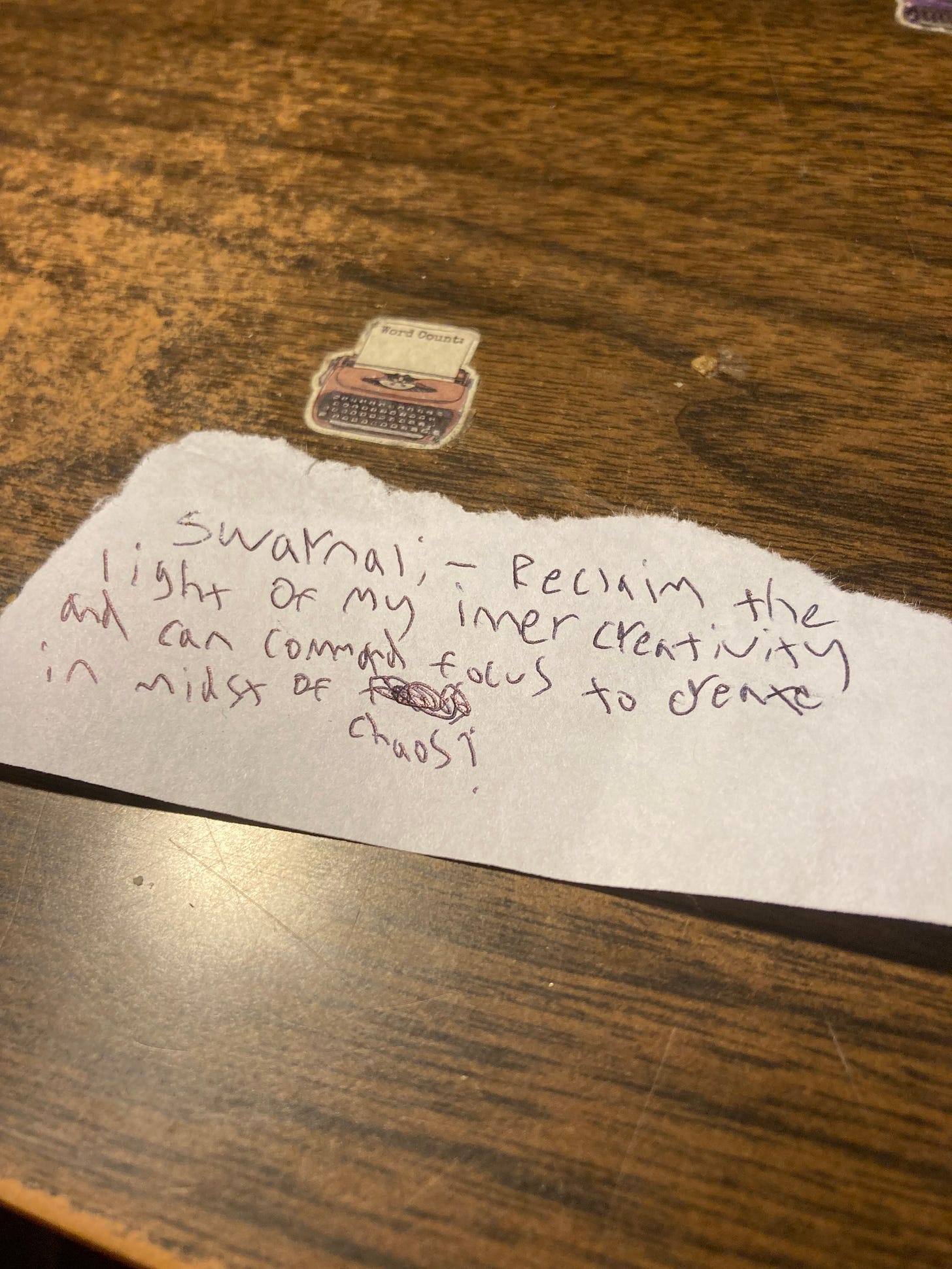 You are very kind, dear friend. Can you send out a thought to the universe that I reclaim the light of my inner creativity and can command focus to create in midst of chaos ?