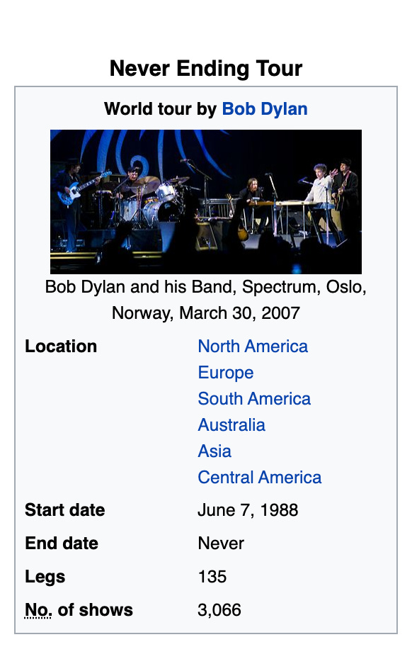 Like he's a guy who's been on tour, other than the pandemic, basically most of every year, for over 30 years now.