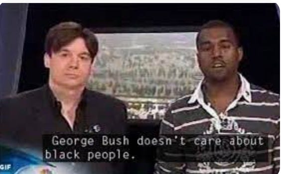 Or even Kanye being like, George Bush doesn't care about black people, during the Katrina thing, Which was like-