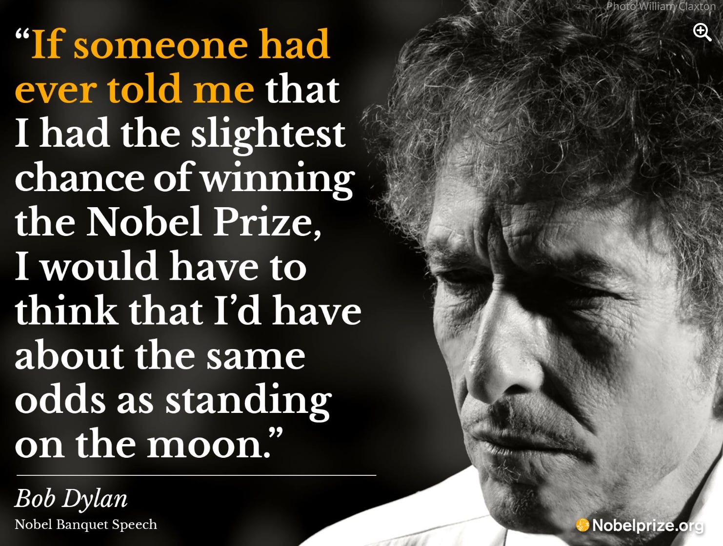 But like, it just doesn't, it doesn't click with me. I'm very invested in the music, and the sound, and the performance element. But it is funny that like the guy who wins the Nobel Prize for his lyrics.