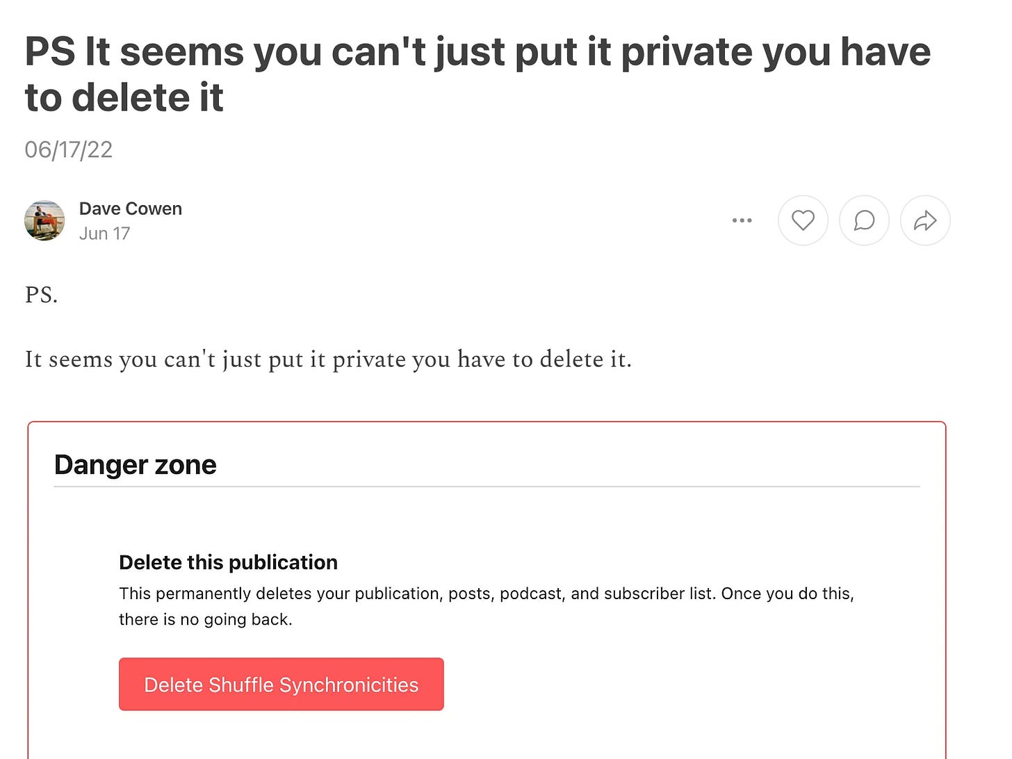 But, so, the live concert was like, actually, and this is where I'm gonna kind of talk in a personal way. The live concert was the night that I deleted the Substack, actually.